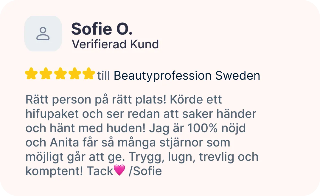 Vi vill att du ska känna dig trygg och bekväm under behandlingen. HIFU är smärtfri och kräver ingen återhämtningstid, så du kan fortsätta med din vardag direkt efter besöket hos oss