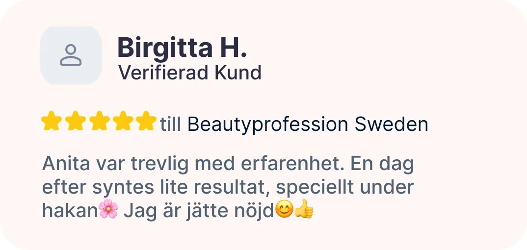 Oavsett om du vill förbättra ansiktets konturer, minska dubbelhaka eller strama åt huden på kroppen, är HIFU en flexibel behandling som vi anpassar efter dina behov.